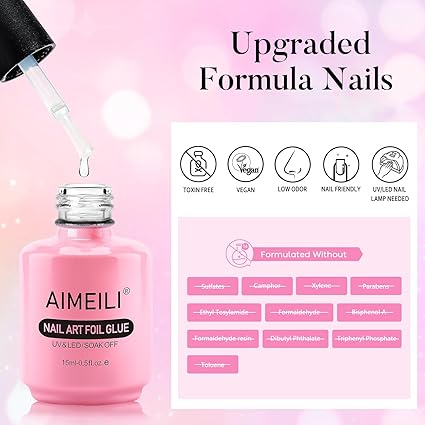 Made from non-toxic materials, these foils are easy to apply using special nail glue and create long-lasting designs that stay put with top coat protection. Perfect for DIY manicures, the foils transfer beautifully to create professional-looking nail art with glittery, holographic finishes.