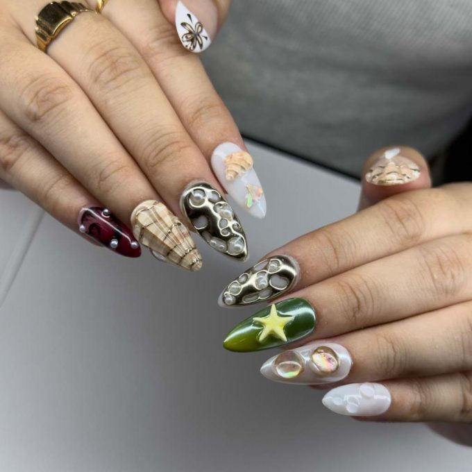 Inferno Hearts là bộ móng tay dạng nóng chảy, lửa đam mê và quyền lực. Những ngọn lửa được chạm khắc xung quanh những trái tim đỏ rực, tạo nên ảo giác về tình yêu được hun đúc trong lửa. Sự pha trộn giữa đỏ bóng bẫy, than hồng ánh sáng và chi tiết kim loại bạc tạo nên sức nóng thôi miên, siêu thực — tiêu đề như một bàn thờ lửa cho khát vọng. Với họa tiết 3D, hiệu ứng chuyển sắc rừng và hiệu ứng sao băng vũ trụ, bộ sản phẩm này hội tụ cả lãng mạn hỗn loạn nổi loạn. Hoàn hảo cho bất kỳ ai muốn bộ móng của mình mang cảm giác giác như một bức thư tình cháy cháy — táo bạo, hoang dã và khó quên.