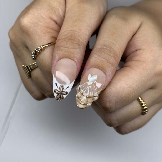 Mermaid’s Treasure is your go-on press-on nails for a magical, oceanic look. This set features a luminous, pearlescent base with a mix of pastel and blue hues. It’s beautifully adorned with delicate 3D sea creatures like a jellyfish, starfish, and shells, along with pearls and subtle sparkle, creating a whimsical underwater fantasy.