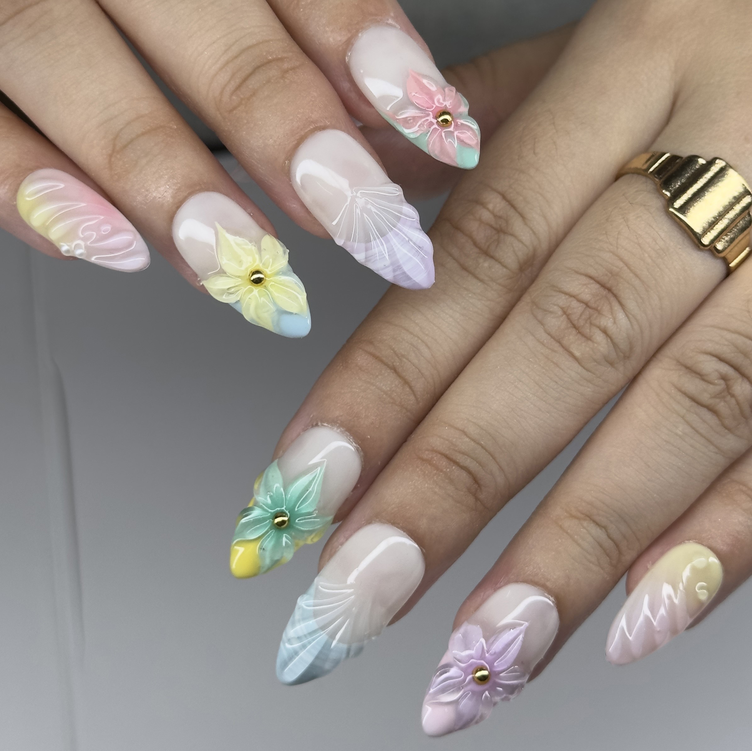 Pastel Garden là mẫu móng tay dán lý tưởng cho vẻ ngoài hoa lá tinh tế và lãng mạn. Bộ móng này có đế trong suốt, sạch sẽ với những bông hoa điêu khắc 3D tuyệt đẹp với nhiều màu pastel dịu nhẹ. Với điểm nhấn ngọc trai tinh tế và các chi tiết điêu khắc, thiết kế này mang đến vẻ đẹp kỳ ảo và thanh thoát, tái hiện vẻ đẹp của một khu vườn kỳ diệu. HÌNH